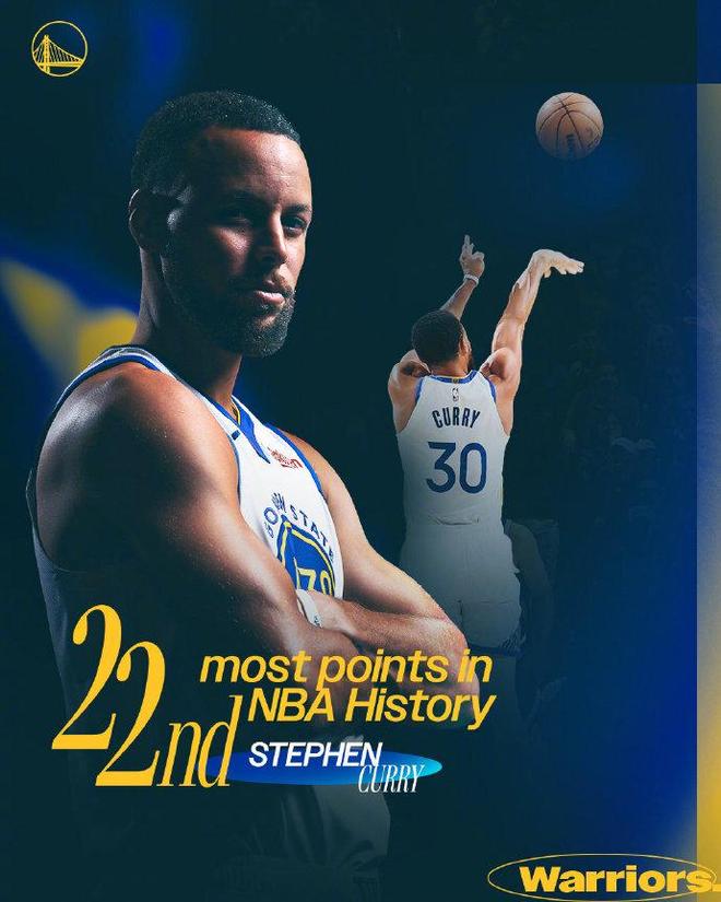 庫裡生涯常規賽總分超越飛人卡特,升至NBA歷史第22位迎來裡程碑,現役僅次於詹姆斯、杜蘭特、哈登與威少位列第5位。