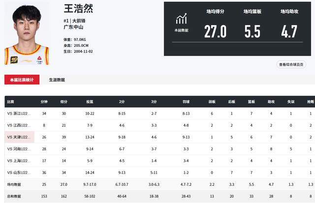 小組賽首秀,王浩然就有上佳表現,對陣浙江隊,他爆砍30分7籃板4助攻1搶斷2蓋帽,命中2記三分球。