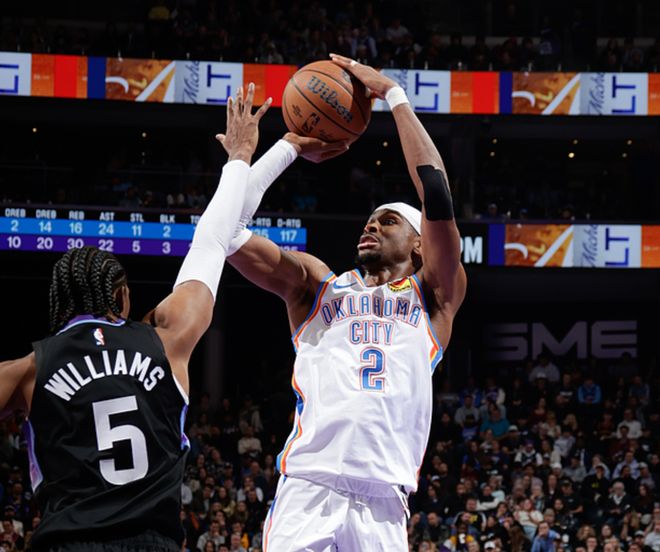爵士主場迎戰雷霆,爵士缺少凱斯勒、尼昂,雷霆缺少傑倫、威金斯,上半場比賽爵士表現出色,一度領先18分,半場戰罷領先1分,下半場比賽雷霆展現可怕實力,半場贏瞭爵士33分,最終雷霆以32分優勢大勝爵士。雷霆8人得分上雙,亞歷山大14中9(三分3中3)得到31分2板8助,傑林9中5(三分7中5)得到15分6板6助2斷,爵士方面喬治10中6得到20分3板8助,馬爾卡寧8中4得到19分6板3助。