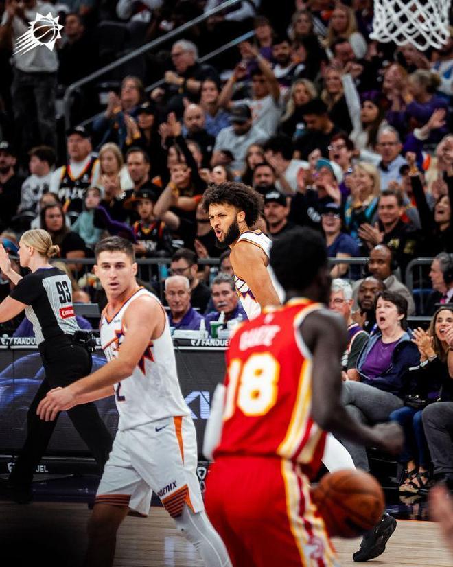 中場休息回來,太陽保持旺盛的進攻火力,他們連續兩節單節狂轟37分,且限制老鷹第三節啞火僅得到20分。太陽第三節瘋狂打出37-20凈勝17分攻勢,前三節比賽結束,太陽已經擴大95-77領先老鷹18分優勢。