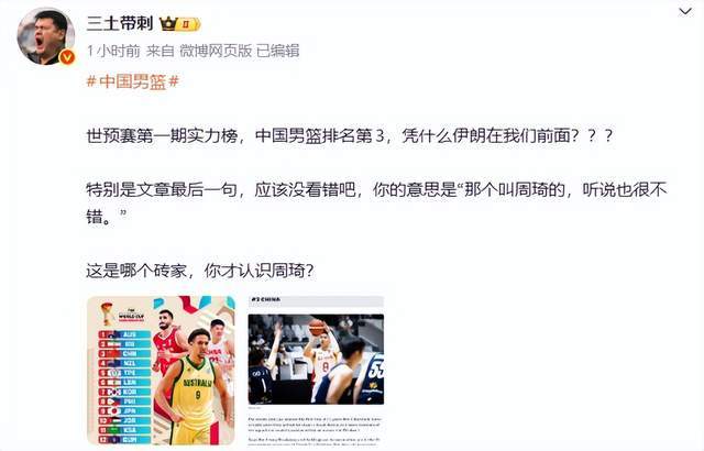 世預賽第一期實力榜,中國男籃排名第3,憑什麼伊朗在我們前面?特別是文章最後一句,應該沒看錯吧,你的意思是“那個叫周琦的,聽說也很不錯。”這是哪個專傢,你才認識周琦?