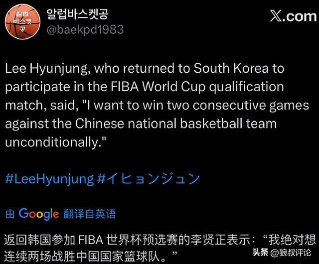 北京時間11月21日,根據韓國媒體的報道,從日本B聯賽返回韓國備戰世預賽的核心球員李賢重接受采訪,談到即將在世預賽迎戰中國男籃的話題表示:“希望兩場世預賽都能戰勝中國男籃”引發外界的熱議。