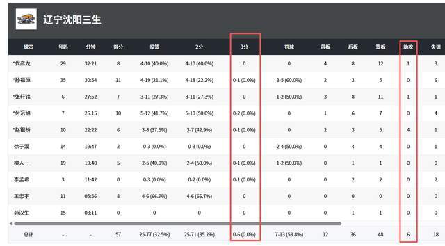 從數據來看,遼寧U19男籃打得是真爛,77投25中,命中率隻有32.5%,三分球更是6投0中,罰球13罰7中。籃板球倒是保護的不錯,拿到48球。助攻隻有6次,毫無配合可言。