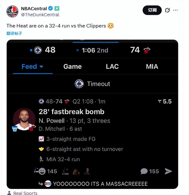 北京時間12月2日,快船和熱火的比賽打完半場,快船56-76落後20分。在第二節還剩7分14秒時,快船44-42領先熱火,但隨後被熱火打出一波32-4,最多落後26分。近15場輸掉13場的快船,看上去又要崩盤瞭。