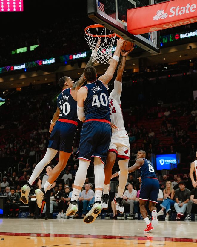 熱火隊的鮑威爾得到30分,阿德巴約得到27分、14個籃板和3次助攻,希羅得到22分,維金斯得到22分和9個籃板,米切爾得到16分和12次助攻。快船隊的萊納德得到36分和7個籃板,祖巴茨得到16分和13個籃板,鄧恩得到12分、4個籃板和5次助攻,哈登得到11分和3次助攻,科林斯得到10分和6個籃板。