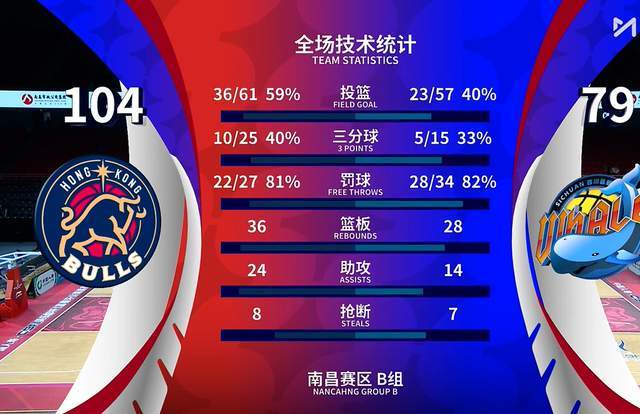 到瞭第四節,香港金牛繼續拉大領先,憑借單節20-17,最終,香港金牛以104-79大勝四川男籃。取得二連勝後香港金牛將與同組的上海久事進行下一場比賽,贏球的一方將拿到一個小組出線名額。