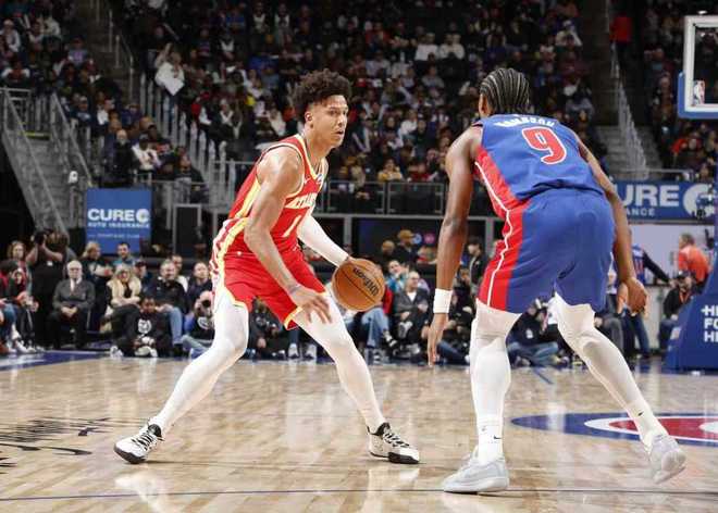 活塞過去兩個主場連續戰勝開拓者與雄鹿收獲2連勝,老鷹上一場客場131-116戰勝奇才,本賽季前兩次交鋒活塞均取勝。本場活塞缺少瓊斯,老鷹缺少特雷-楊、波爾津吉斯、托平。首節前3分半鐘活塞11-8領先,鄧羅外線開火率隊擴大15-10領先優勢,老鷹內外開花追到僅差1分。杜倫暴扣率隊維持26-22領先優勢,老鷹繼續緊咬比分拉鋸戰纏鬥,首節結束活塞34-33領先老鷹。老鷹22中13接近6成準星,其中三分10中5,沃克3記三分11分,活塞27中14,其中三分6中3,坎寧安3中3得到7分5助攻。