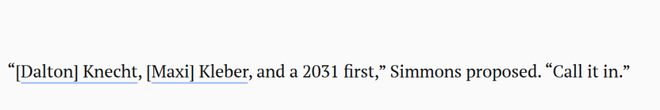 那麼湖人要送出怎樣的報價才能打動鵜鶘?名嘴比爾-西蒙斯在播客節目上表示:用克內克特、克勒貝爾、再加上一個2031年的首輪簽,” 西蒙斯建議道,“就這麼報價。”