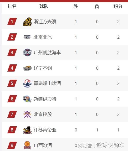 先說說首輪比賽的具體情況吧。目前,首輪比賽還沒有完全結束,廣東、同曦、浙江、吉林、上海以及寧波,這6支球隊還沒有登場,他們在積分榜上也沒有積分,暫時排在積分榜第15-20名之間。首輪比賽,廣廈、新疆、廣州、北京、遼寧、青島以及北控,這7支球隊全部贏球,他們的戰績都是1勝0負,獲得2分積分。而山西、天津、山東、江蘇、福建、深圳以及四川,這7支球隊在首輪都輸瞭,暫時隻獲得1分的積分。