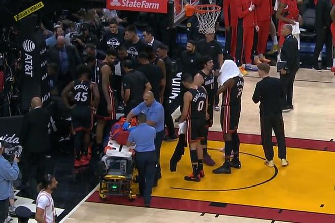 硬漢,熱火隊約維奇僅登場12秒便摔傷胳膊,隨後戴上夾板微笑離場