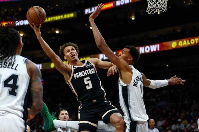 馬刺過去4場湖人、雷霆、尼克斯與奇才收獲4連勝,老鷹上一場客場126-133惜敗黃蜂,本賽季首次交鋒馬刺主場135-116戰勝老鷹。本場老鷹缺少波爾津吉斯與特雷-楊,馬刺在開局5-6落後情況下,很快一波6-0攻勢取得領先優勢。馬刺被追到13-11,並在之後維持23-19領先優勢,但馬刺打出一波9-0攻勢拉開比分,首節比賽結束馬刺32-19領先老鷹13分優勢。