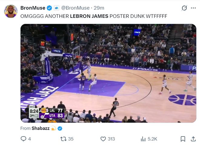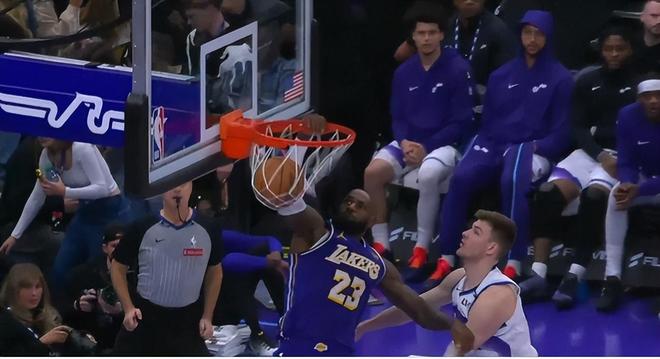 末節開場詹姆斯連拿4分幫助湖人反超,隨後詹姆斯被換休休息,詹姆斯登場就助攻東契奇三分命中打停爵士,湖人領先12分到被爵士縮小到4分隻用瞭三分鐘,但八寸壘兩罰全中,老詹兩罰全中再度拉開,隨後比賽走向完結。
