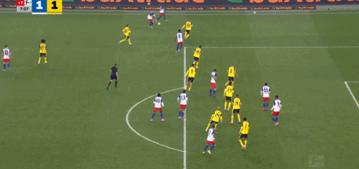 第90+7分钟,柯尼希斯多费尔最后时刻头球破门,汉堡1-1多特