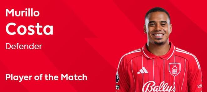 在周六晚進行的英超第12輪比賽中,諾丁漢森林客場3-0擊敗利物浦,賽後,森林後衛穆裡略被評為本場比賽最佳球員。