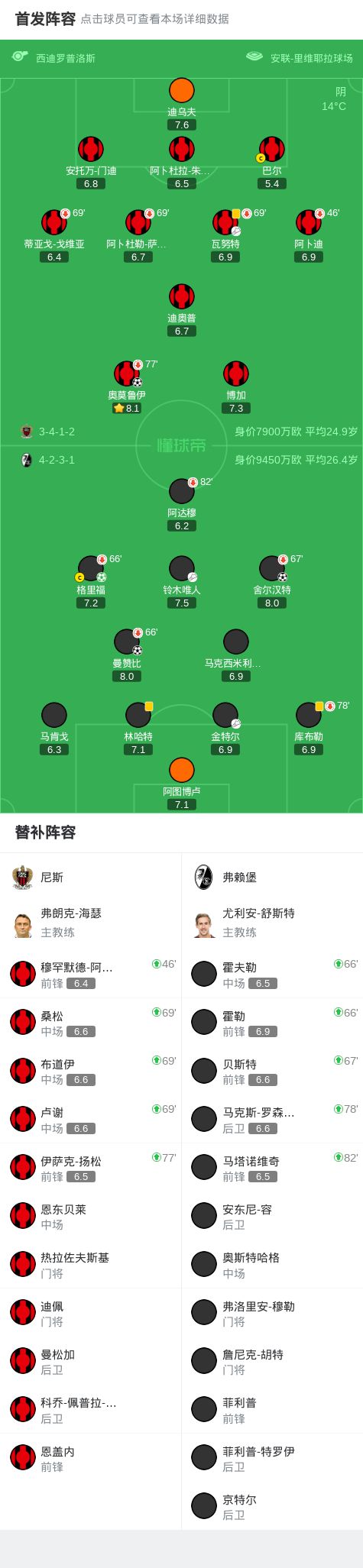 第25分钟,尼斯球员瓦努特助攻奥莫鲁伊打入一球。