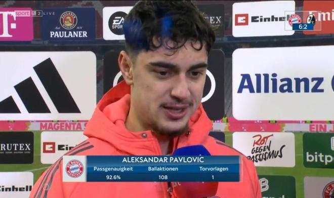 當地時間11月22日,拜仁慕尼黑在德甲中以6-2的比分戰勝弗賴堡。賽後,拜仁慕尼黑球員帕夫洛維奇接受瞭采訪。