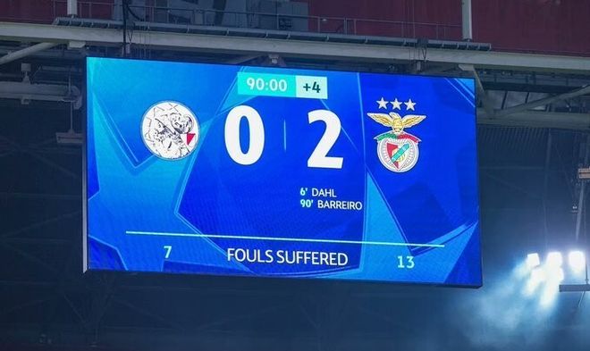 第6分钟,萨穆埃尔-达尔抽射破门,做客的本菲卡先拔头筹。第90分钟,巴雷罗突破后抽射破门,本菲卡将比分锁定为2-0。穆帅执教本菲卡迎来欧冠首胜,终结4连败。而阿贾克斯本赛季欧冠则是5连败,成为唯一0分队。