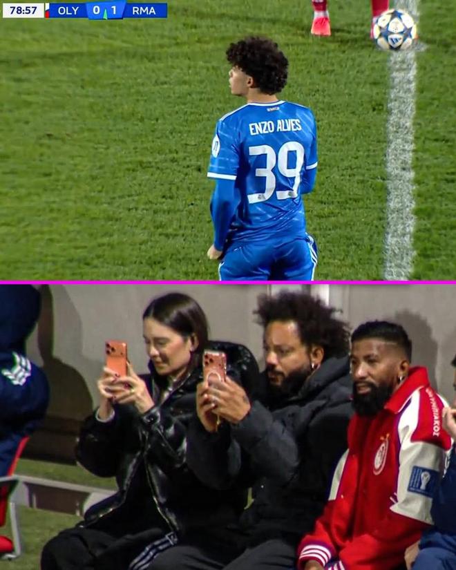 而马塞洛也在场边见证了儿子的青年欧冠首秀,并用手机记录下了这一时刻。