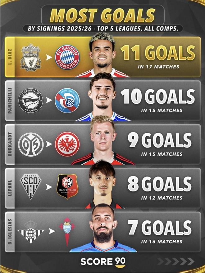 最近SCORE90发布了五大联赛25/26赛季新援榜单。迪亚斯、拉什福德等表现突出,尤其拉什福德离开曼联后状态明显提升,进球与助攻更稳定。围绕“谁是这份榜单里表现最好的新援”,你的第一选择是谁?