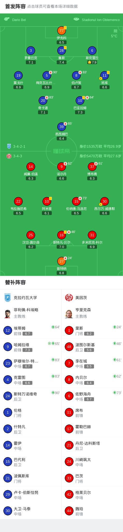 北京时间11月28日,欧洲协会联赛联赛阶段第4轮展开较量,克拉约瓦大学迎战美因茨。比赛中,哈姆拉维主罚点球命中,为球队打入全场唯一进球。凭借此粒进球,克拉约瓦大学以1-0战胜对手,全取三分。