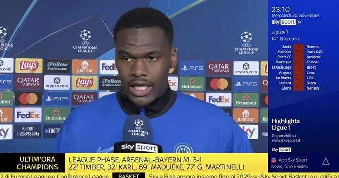 北京时间11月27日,在欧冠联赛阶段第5轮的比赛中,国际米兰客场1-2被马德里竞技绝杀,遭遇本赛季欧冠首败和各项赛事两连败,赛后此战首发出场的博尼接受了意大利天空体育的采访。