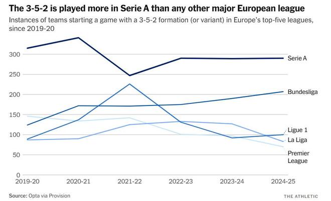 近日,The Athletic發佈戰術專題深度解析瞭近年來重獲青睞的3-5-2陣型體系。該文從這一經典陣型的意大利足球根源入手,系統梳理瞭其在不同時期的戰術演變,同時剖析瞭該體系在構建防守穩定性與進攻效率方面的獨特優勢,也指出瞭其在現代足球環境中的戰術局限性,以下為專題文章。