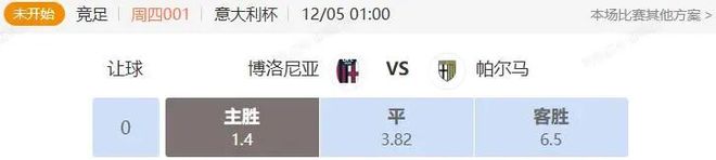 競足 周四001 意大利杯 博洛尼亞VS帕爾馬
