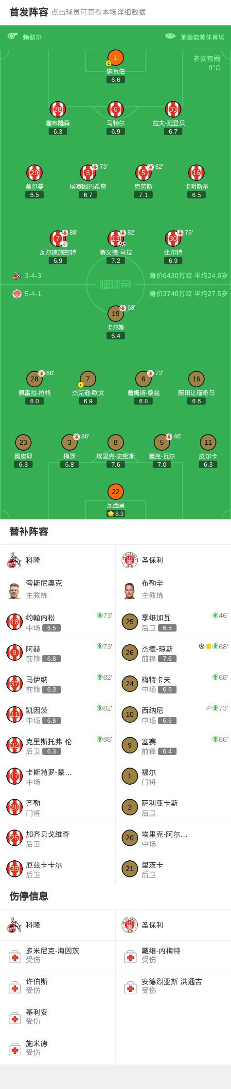 北京时间12月6日,德国足球甲级联赛第13轮,科隆坐镇主场迎战圣保利。比赛中,科隆由瓦尔德施密特送出助攻,赛义德-马拉破门得分,为主队取得领先。随后在下半场补时阶段,圣保利由西纳尼助攻杰德-琼斯完成进
