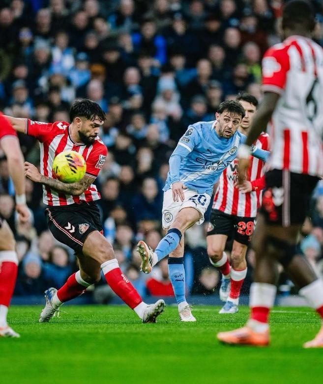 本周末曼城迎来了英超第十五轮的考验,坐镇主场伊蒂哈德球场,迎战来访的桑德兰,本场比赛曼城进攻端的表现完胜桑德兰,靠着鲁本迪亚斯、格瓦迪奥尔和福登的进球,3-0大胜最强升班马,由于本轮联赛领头羊阿森纳被维拉绝杀,曼城也是双喜临门,在自己拿到三分的同时,把和阿森纳的积分差距缩小到了2分。