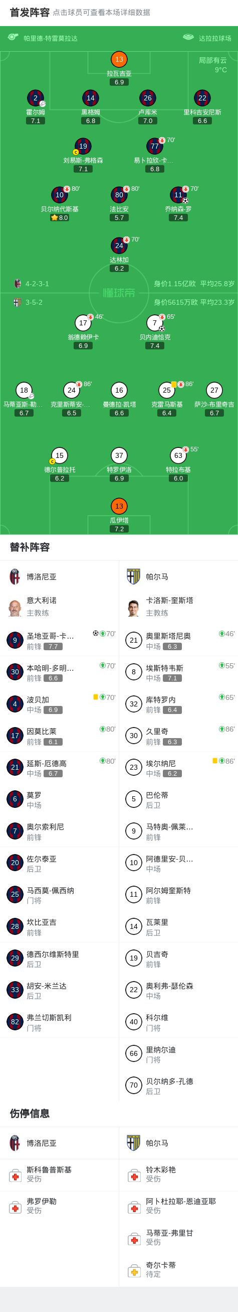 第38分鐘,博洛尼亞球員喬納森-羅打入一球。