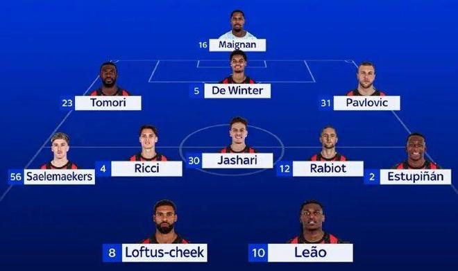 米蘭3511:邁尼昂;托莫裡、德溫特、帕夫洛維奇;薩勒馬科爾斯、裡奇、亞沙裡,拉比奧特、埃斯圖皮尼安;奇克、萊奧