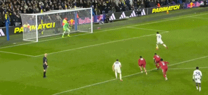 第69分鐘,科納特禁區內鏟倒尼奧托,裁判回看VAR之後判罰點球。第73分鐘,勒溫操刀命中,利茲聯扳回一城,1-2!