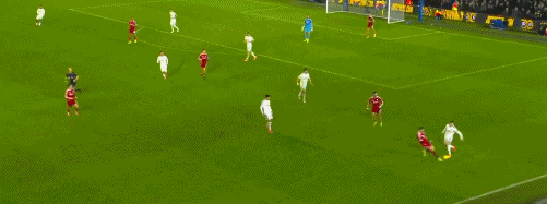 第2分鐘,范戴克頭球解圍失誤,利茲聯趁機踢出快速反擊,奧卡福爾禁區外起腳低射稍稍打偏,利物浦逃過一劫。