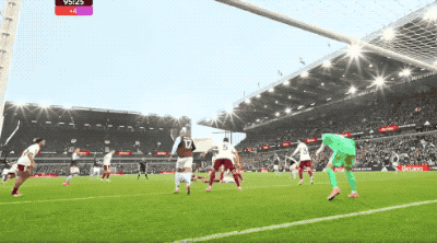 第95分鐘,傷停補時的最後時刻,維拉發動猛攻,槍手禁區內風聲鶴唳,同樣是替補登場的佈恩迪亞打進絕殺。