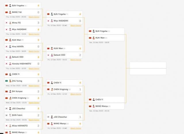 WTT总决赛女单四强:孙颖莎vs蒯曼、王曼昱vs陈熠