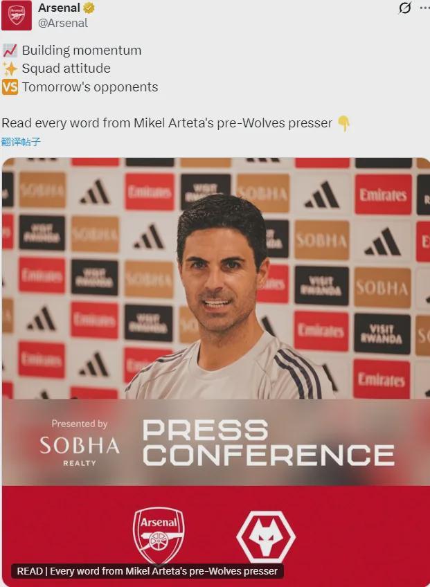 阿爾特塔出席瞭賽前新聞發佈會,我們來看主要內容。