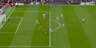僅僅一分鐘之後,佈萊頓快速反擊,魏費爾右側低平球傳到後點,科納特試圖解圍沒能夠到皮球,戈麥斯包抄鏟射將球打在門柱外側,利物浦逃過一劫。