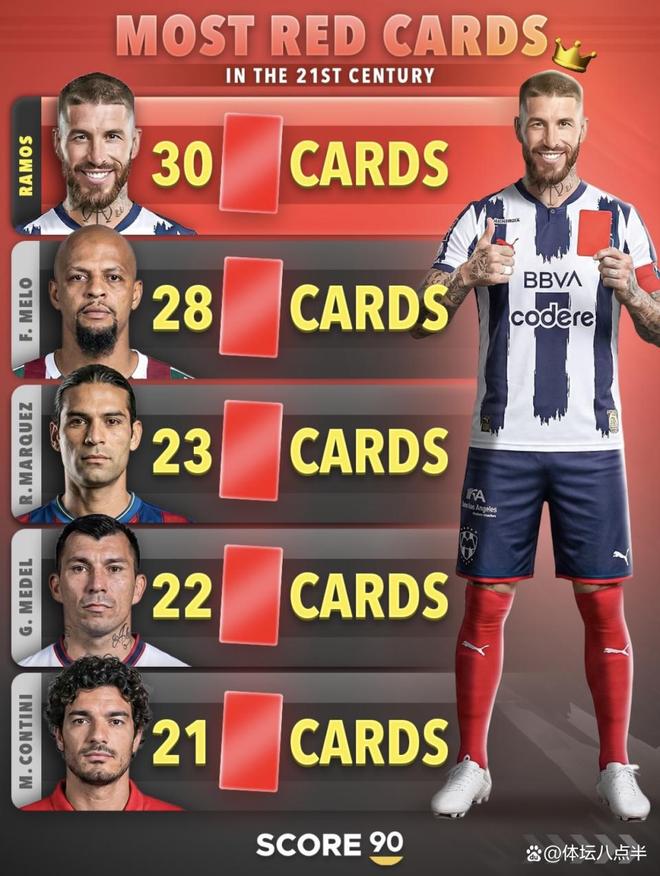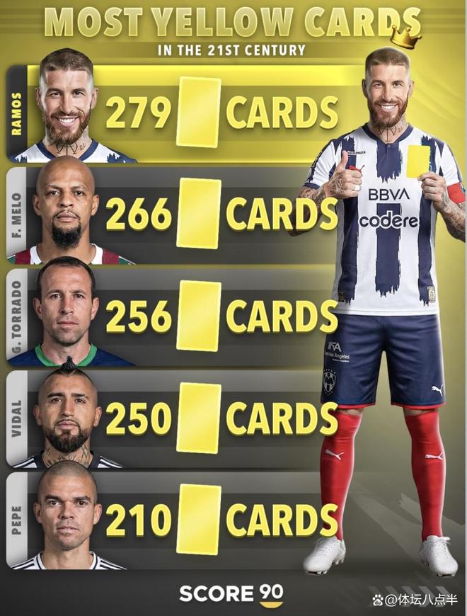 最近SCORE 90发布了“21世纪黄牌和红牌最多球员榜”。拉莫斯、佩佩、比达尔、梅德尔等一批后防硬汉悉数入选。像普约尔、蒂亚戈·席尔瓦这样的名后卫却没有上榜,让不少球迷看得满头问号。这组数据到底是在刻画“粗野球员”,还是在提醒我们有人长期替球队扛下最危险的犯规,接下来就从这些数字说起。
