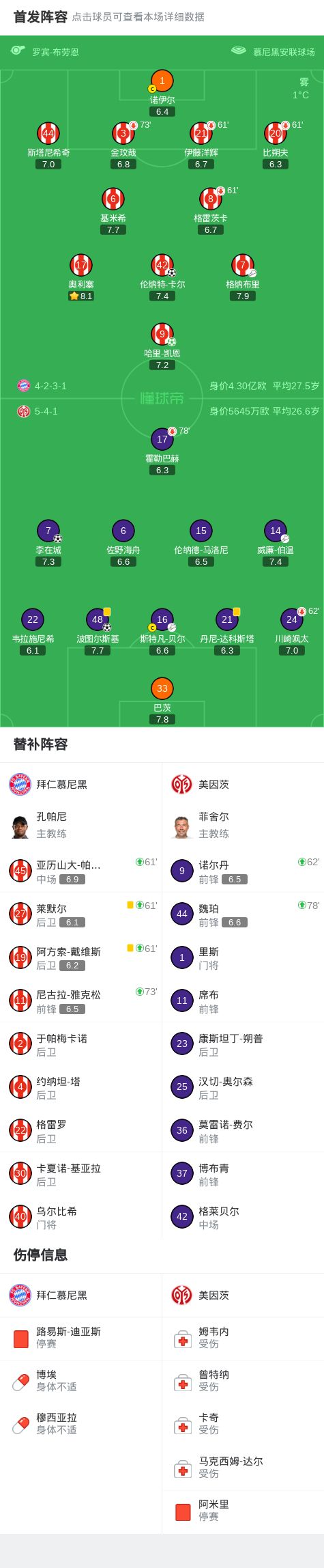 第67分钟,斯特凡-贝尔送助攻,李在城头球破门,美因茨2-1拜仁