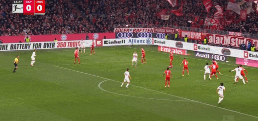 第29分钟,格纳布里送助攻,卡尔破门,拜仁1-0美因茨