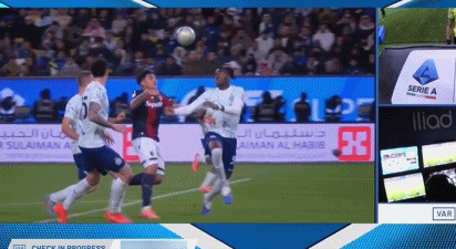 第32分鐘,比塞克禁區內手球,博洛尼亞眾將集體投訴,裁判回看VAR之後認定點球。第35分鐘,奧爾索利尼操刀命中,博洛尼亞扳平比分,1-1!