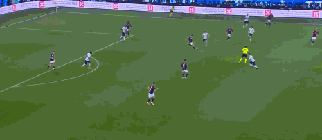 上半場,第2分鐘,國米就完成閃擊破門,巴斯托尼持球推進到大禁區角,觀察後送出傳中到後點,小圖拉姆跟進凌空側身抽射入網。
