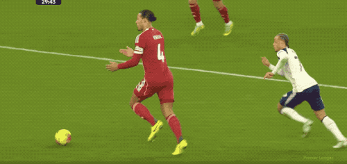 第30分鐘,西蒙斯背後出腳,踩在瞭范迪克的跟腱上,順勢又將自己的荷蘭國傢隊隊友放倒,裁判立即向西蒙斯出示黃牌。