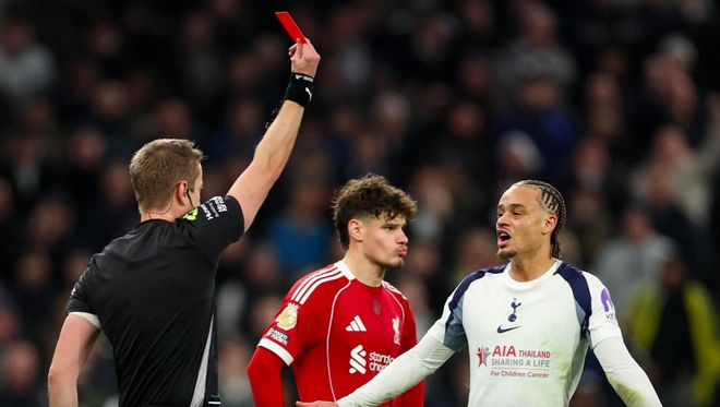 VAR介入,裁判回看過後做出改判,直接向西蒙斯出示紅牌,來到英超的第14場比賽,花費熱刺6000萬歐元的西蒙斯打進1球,送出2次助攻,數據依舊慘淡。