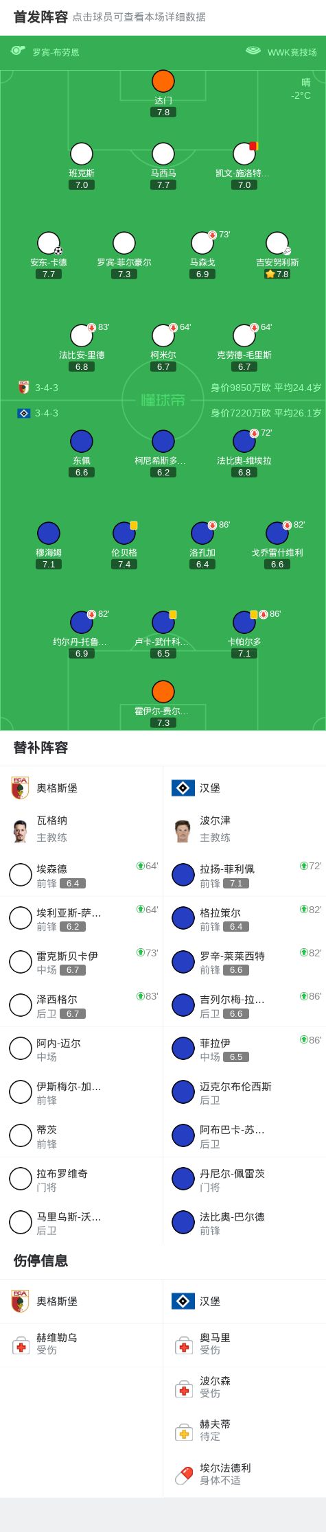 第76分钟,奥格斯堡球员吉安努利斯助攻安东-卡德打入一球。