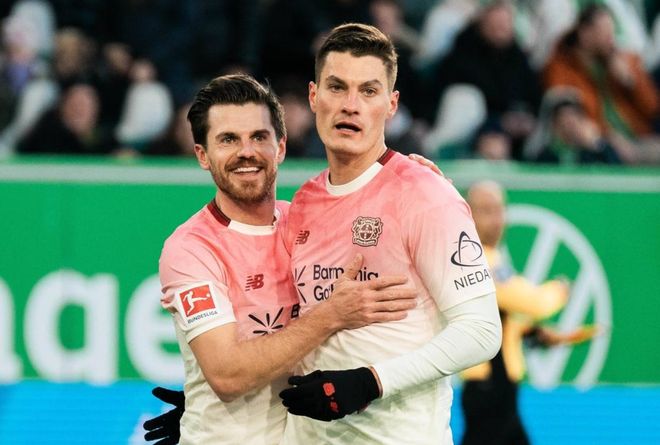 勒沃库森排出3421阵型。希克顶在最前面。马里克-蒂尔曼和霍夫曼联袂出击。格里马尔多、阿莱士-加西亚、马扎和波库搭档4中场。塔普索巴、巴代和安德里希3后卫首发出战。弗莱肯担任首发门将。勒沃库森首发阵容总身价2.15亿欧元。而沃尔夫斯堡首发阵容总身价1.14亿欧元。